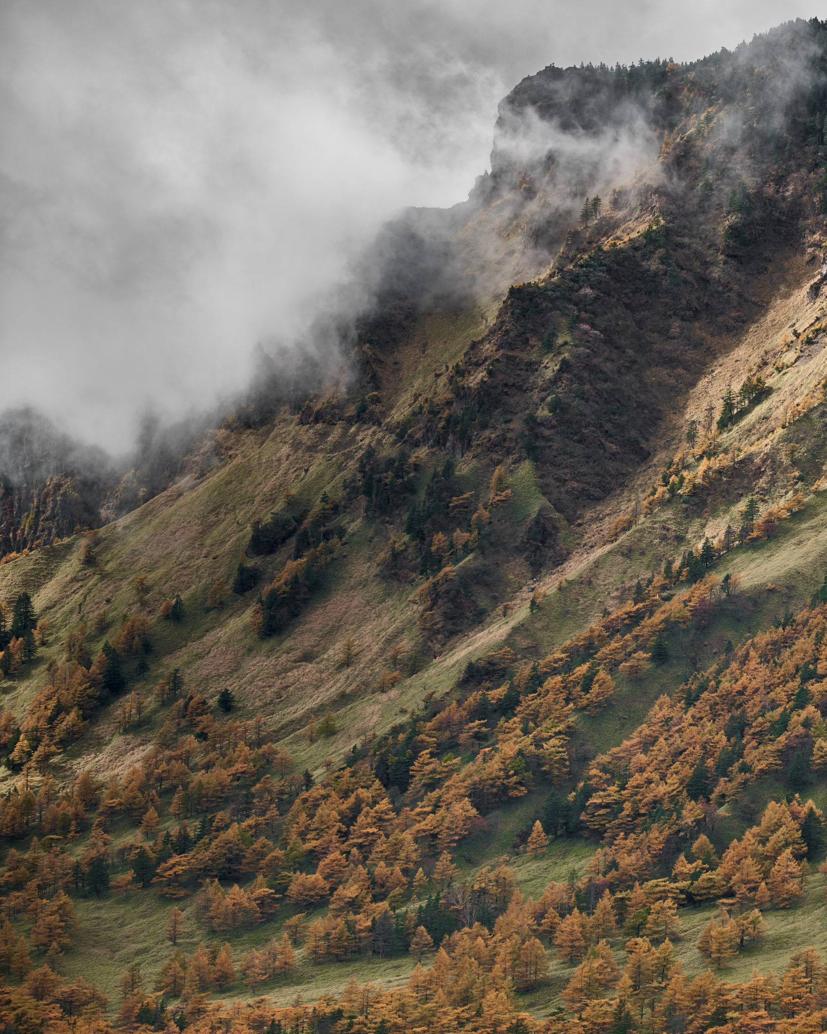 Descending from Nokogiri-dake via the J-Band and continuing toward the base of Kurofu-yama through the “Kusasuberi” area, the terrain becomes gentler—standing in contrast to the rocky outer rim. With each step, the richness of the vegetation becomes more apparent.