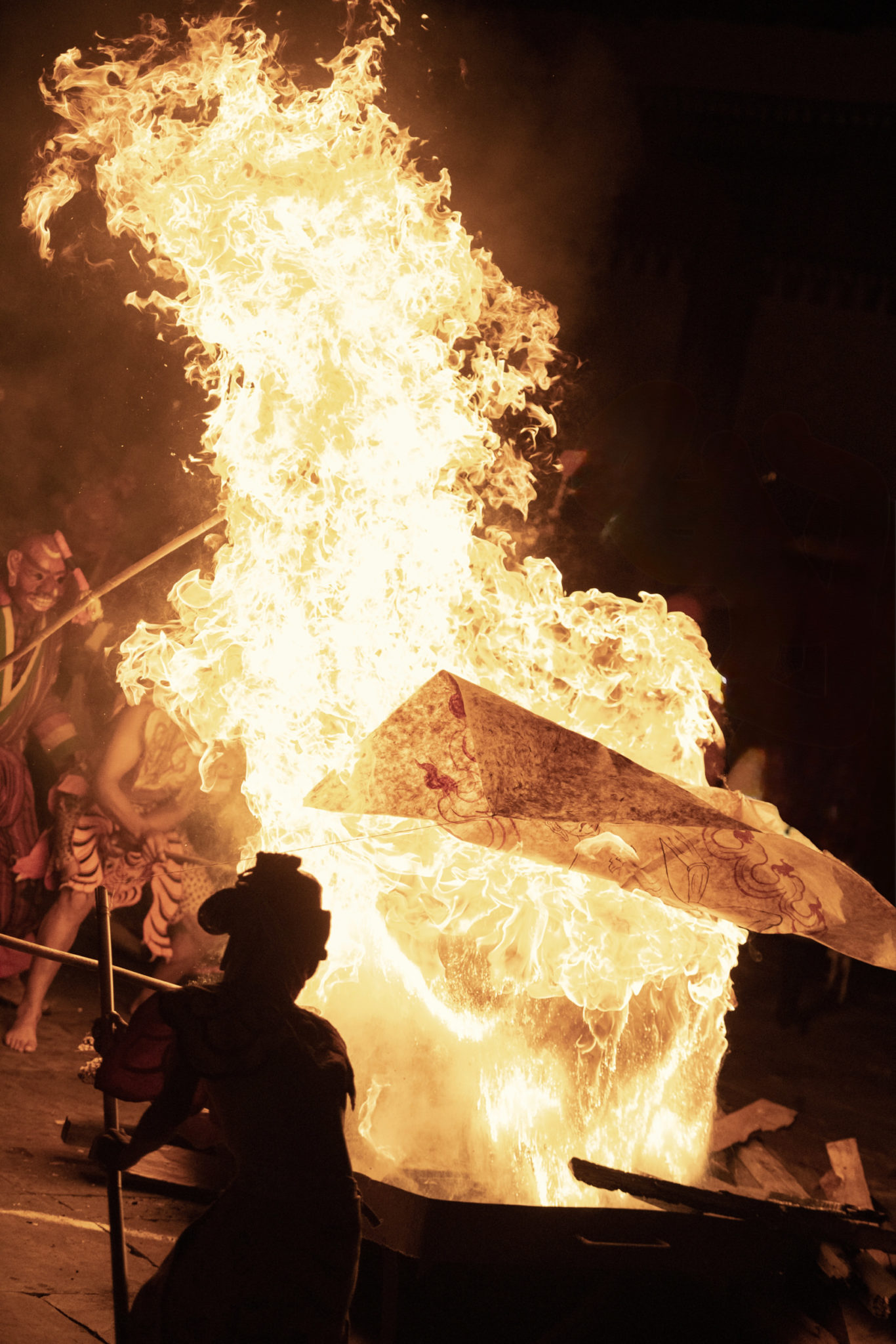 As people repeatedly pass through the flaming gate, their bodies imbued with heat, light, and smoke, they trace circular paths that together form a living mandala. In this way, the festival comes to completion, imbued with the fragrance of samsara.