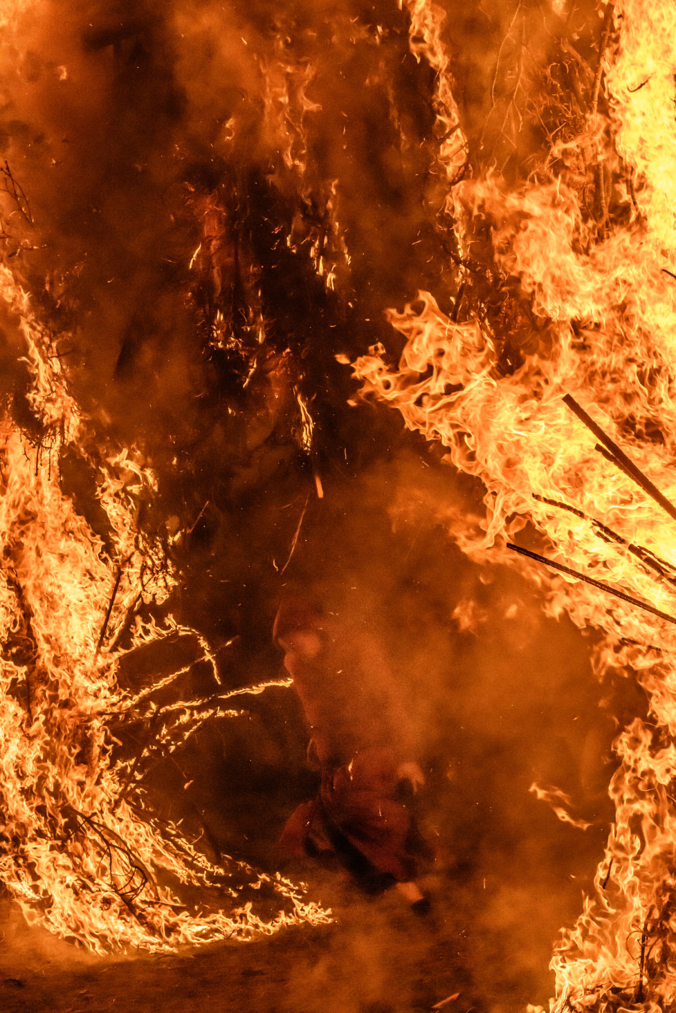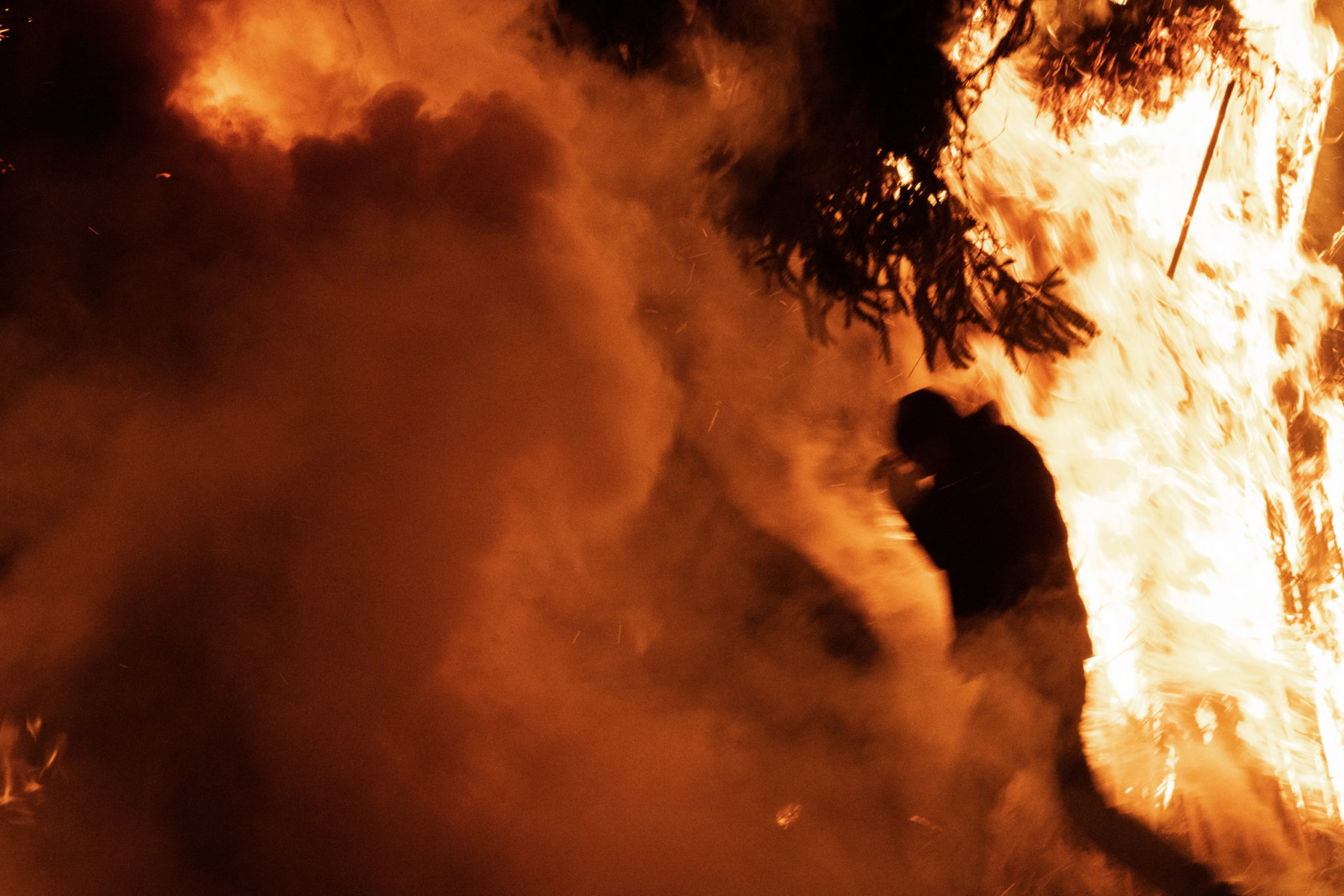 人々が熱、光、煙を帯びながら円を描くように幾度となく火門を潜り抜けるさまはひとつの曼荼羅となり、祭りは輪廻の香りを纏い完結する。